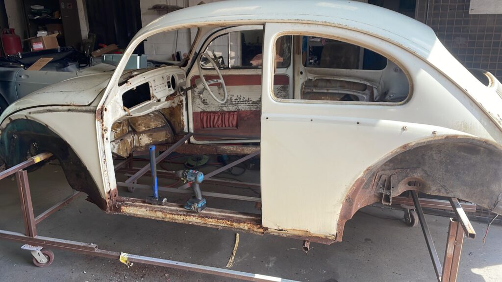 1963 VW Beetle, undergoing full bare-metal restoration return back to its original, pristine factory finish.